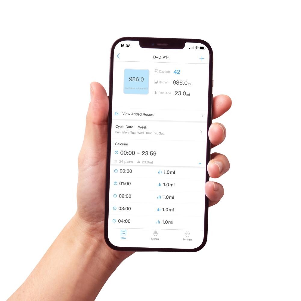Die D-D P1+ ist eine App-gesteuerte Dosierpumpe, die Wifi und Bluetooth für den einfachen Anschluss an ein drahtloses Netzwerk oder direkt an ein Mobilgerät nutzt.