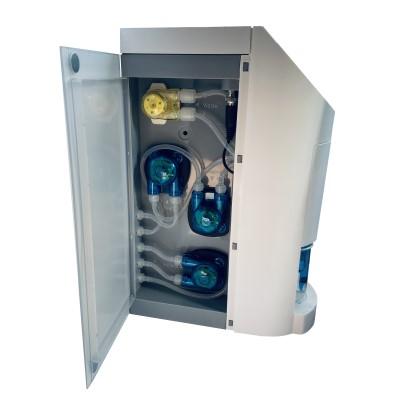 Die schrittmotorbetriebenen Pumpenköpfe, die Präzisions-pH-Sonde, die doppelten optischen Sensoren, die automatischen Rühr- und Spülprotokolle sind allesamt wichtige Merkmale, die sicherstellen, dass jede Testprobe mit größtmöglicher Genauigkeit gesammelt, getestet und dosiert wird. Unerwartet hohe oder niedrige Messwerte (außerhalb des Trends) werden automatisch erneut getestet, um Probenfehler zu vermeiden, und benutzerdefinierte Grenzwerte warnen vor Über- oder Unterdosierung außerhalb der festgelegten Parameter.