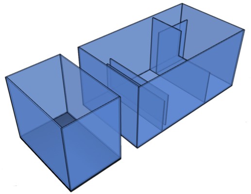 Das ultraleise Doppelrohr-Überlaufsystem wird durch den ersten Abschnitt des Technikbeckens weiter verfeinert, was zu einem leisen Wasserrücklauf ohne Spritzen oder Glucksen führt. Bei Verwendung von Filtersocken (Option bei der Bestellung) läuft das Wasser dann in einen Doppelfiltersockenabschnitt über, der mit einer diffusen Schalldämpferplatte ausgestattet ist, um jegliche Wassergeräusche zu reduzieren.
