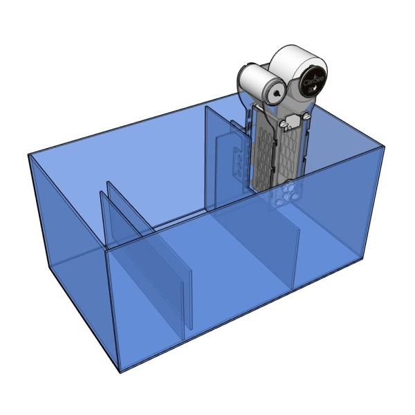 Die Reef Pro-Aquarien werden serienmäßig mit einem ClariSea-kompatiblen Technikbecken geliefert, aus dem die Filtersockenvorrichtung bei Bedarf herausgenommen und durch eine ClariSea-Einheit ersetzt werden kann. Dies ist auch möglich, wenn das Aquarium bereits mit Wasser gefüllt ist. Die mitgelieferte Hauptüberlaufleitung wird direkt in den ClariSea-Einlassstutzen geführt, so dass kein Zuschneiden oder Ändern der Leitungen erforderlich ist.