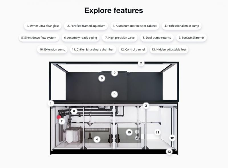 Diese schönen Hochleistungsaquarien profitieren von einem völlig neu gestalteten Durchflusssystem und neuen, hydrodynamisch überlegenen Rohrleitungen, die eine bis zu 50 % höhere Wasserzirkulation ermöglichen und gleichzeitig den Energieverbrauch erheblich senken.